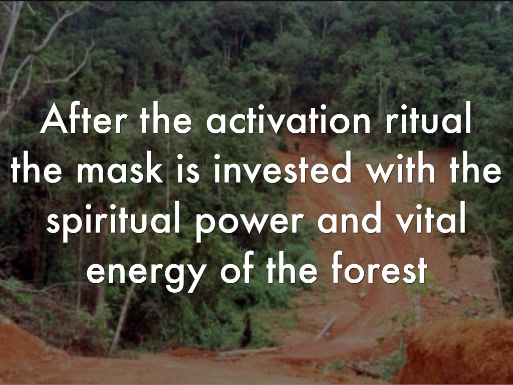 After the activation ritual the mask is invested with the spiritual power and vital energy of the forest