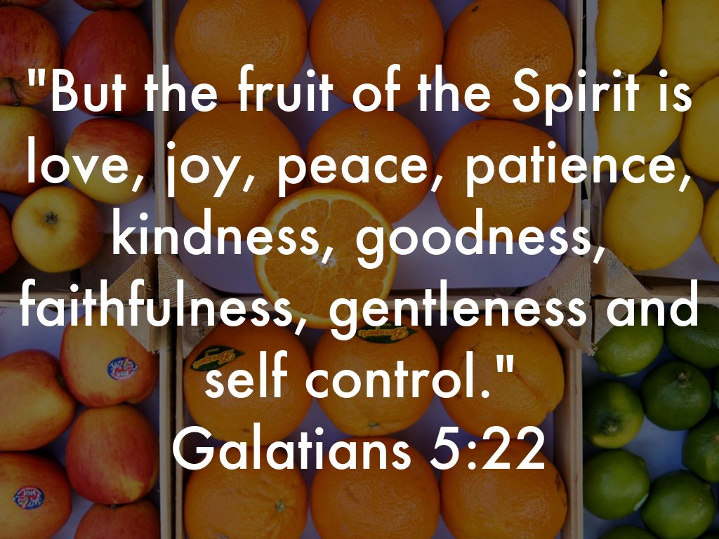 "But the fruit of the Spirit is love, joy, peace, patience, kindness, goodness, faithfulness, gentleness and self control."
