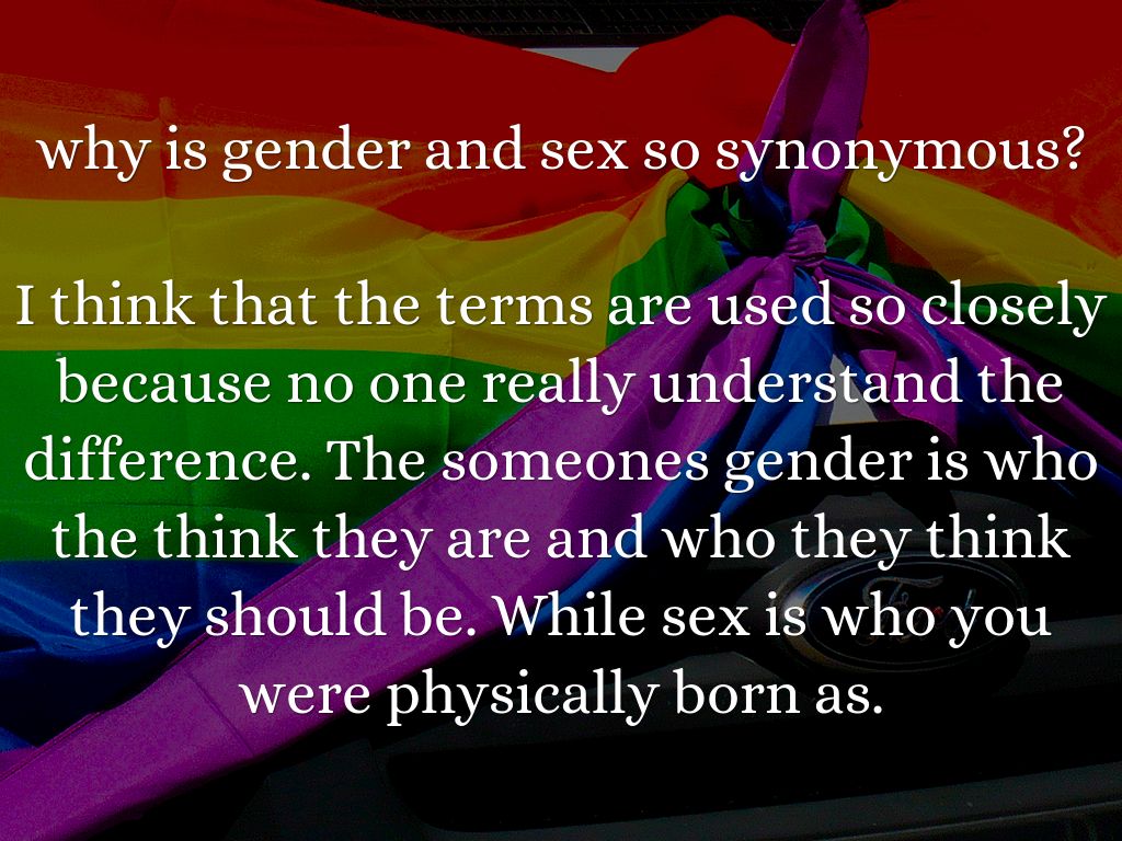 I think that the terms are used so closely because no one really understand the difference. The someones gender is who the think they are and who they think they should be. While sex is who you were physically born as.