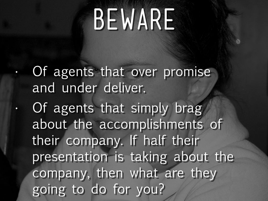 Of agents that simply brag about the accomplishments of their company. If half their presentation is taking about the company, then what are they going to do for you?