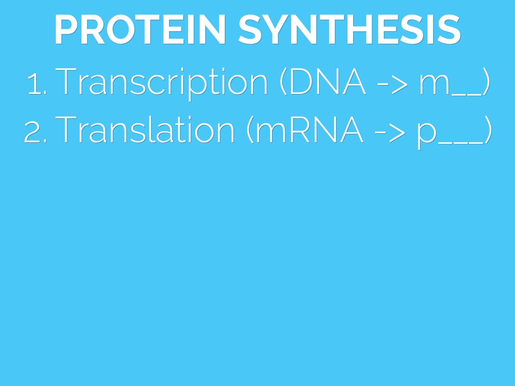 - Translation (mRNA -> p___)