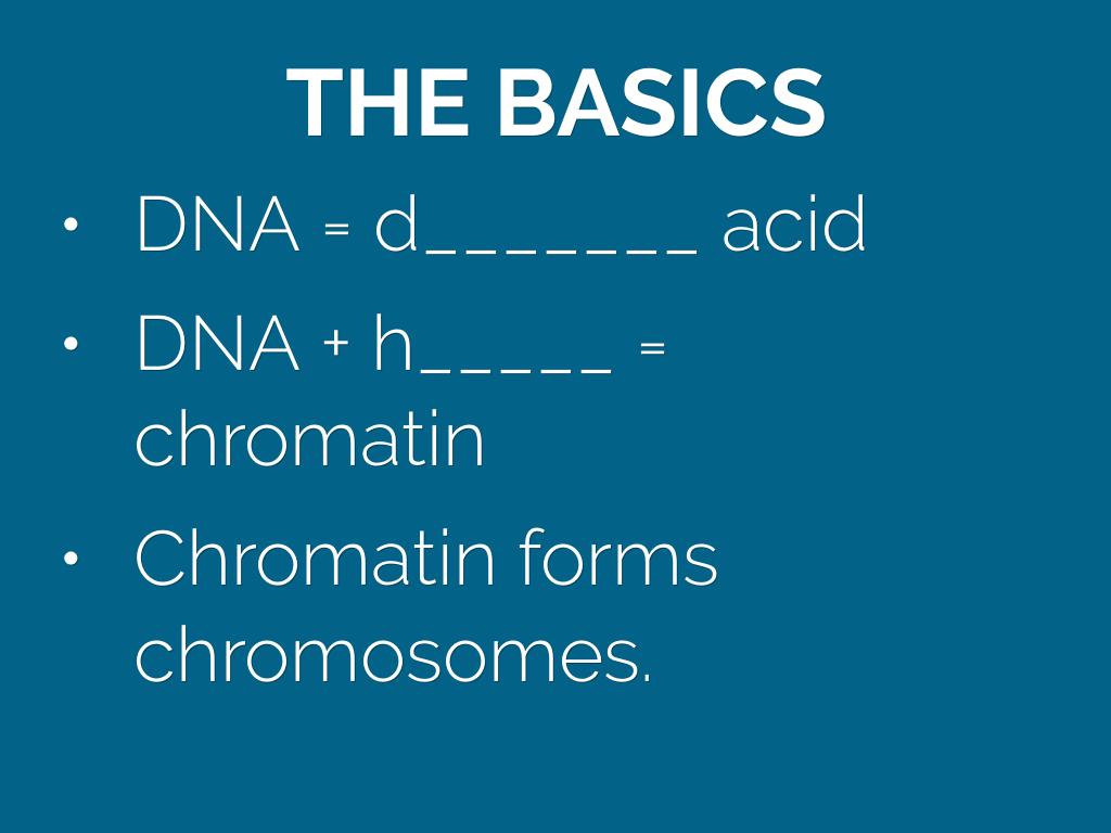 - DNA + h_____ = chromatin