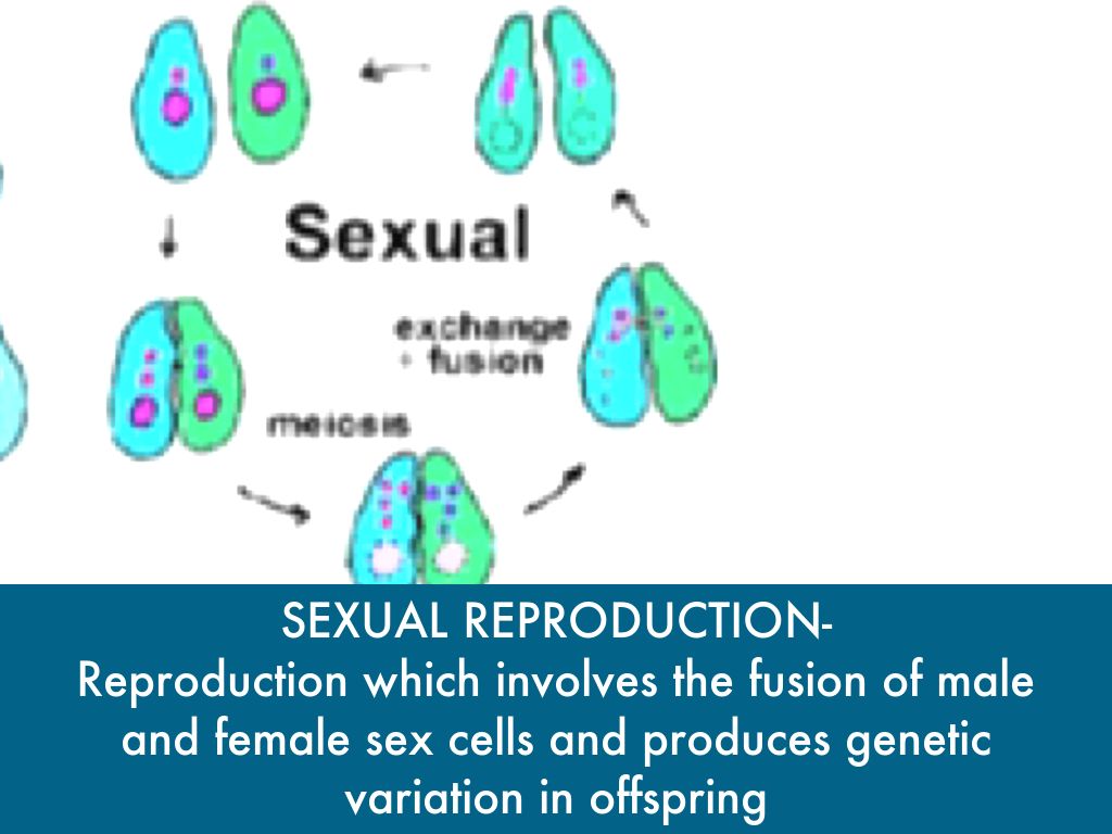 Reproduction which involves the fusion of male and female sex cells and produces genetic variation in offspring