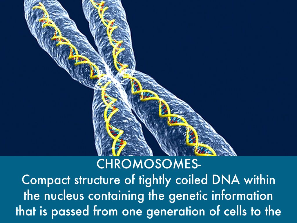 Compact structure of tightly coiled DNA within the nucleus containing the genetic information that is passed from one generation of cells to the next.