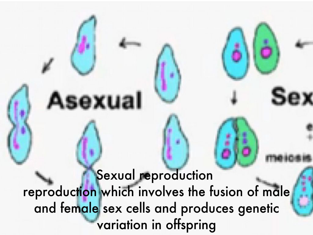 reproduction which involves the fusion of male and female sex cells and produces genetic variation in offspring