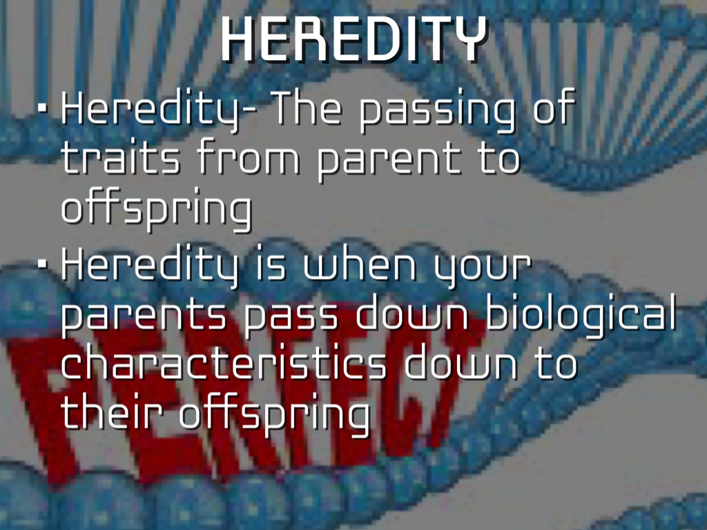 Heredity is when your parents pass down biological characteristics down to their offspring