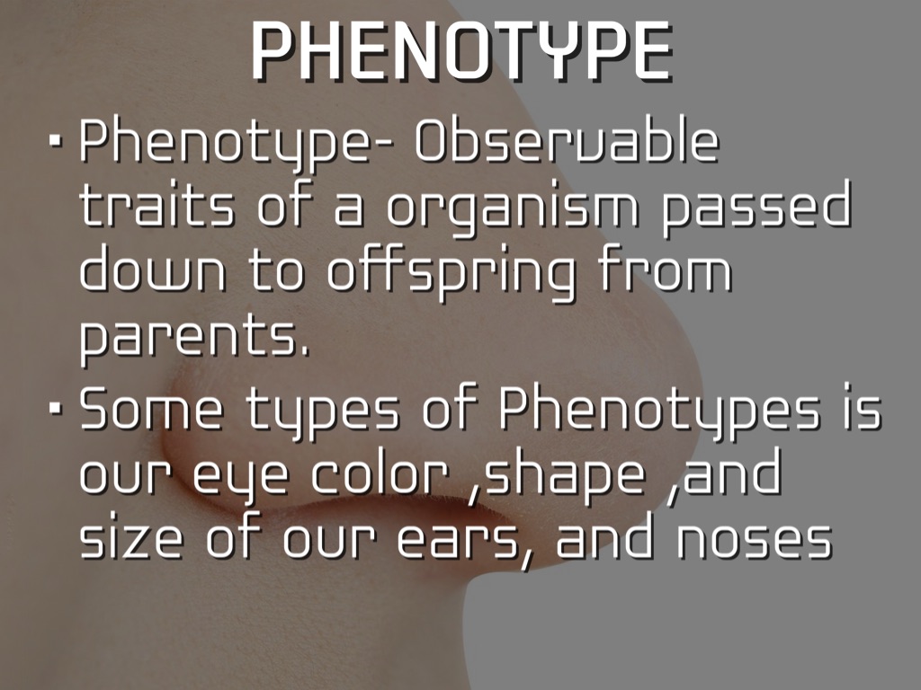 Phenotype- Observable traits of a organism passed down to offspring from parents.