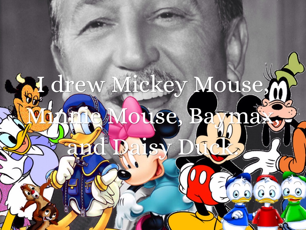 I drew Mickey Mouse, Minnie Mouse, Baymax, and Daisy Duck.
