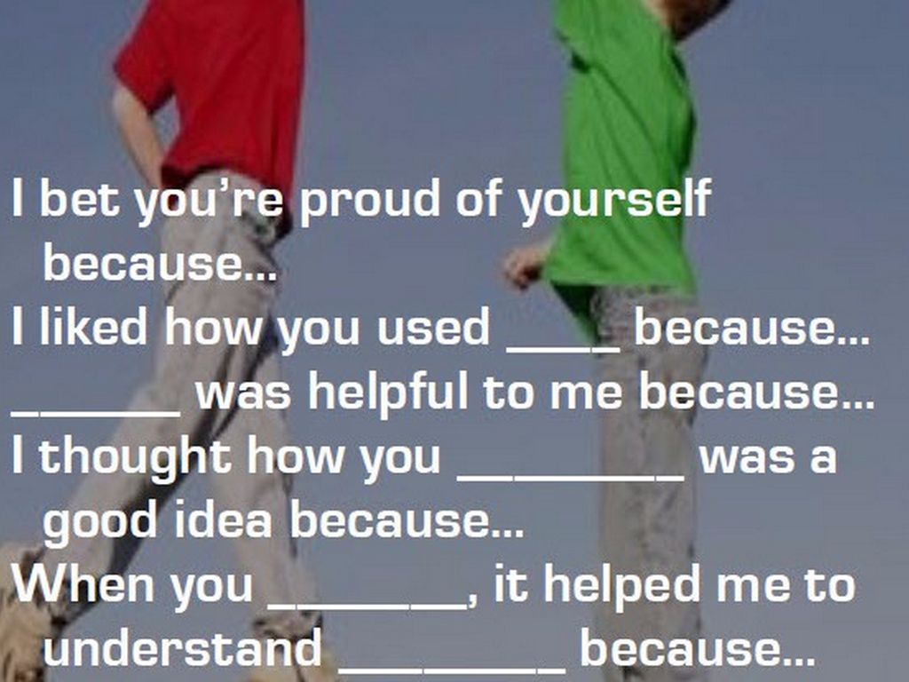 I can tell a story about what I’m trying to accomplish in Genius Hour & give my peers compliments as feedback.