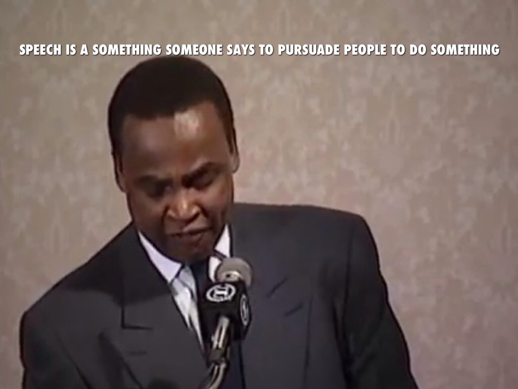 SPEECH IS A SOMETHING SOMEONE SAYS TO PURSUADE PEOPLE TO DO SOMETHING