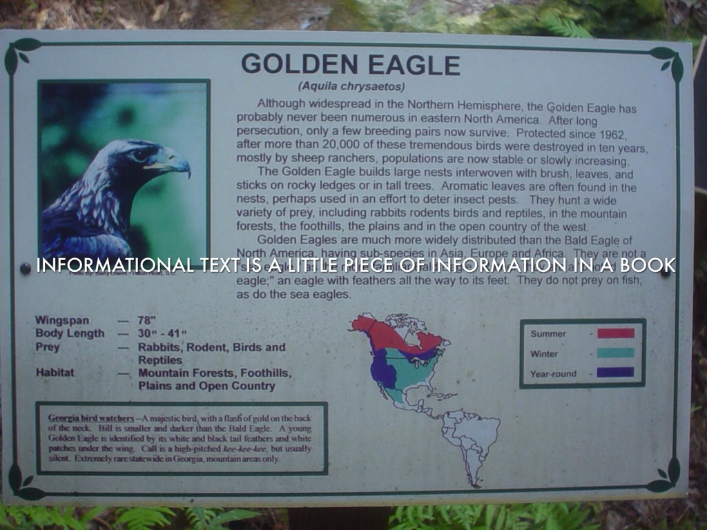 INFORMATIONAL TEXT IS A LITTLE PIECE OF INFORMATION IN A BOOK
