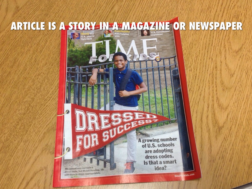 ARTICLE IS A STORY IN A MAGAZINE OR NEWSPAPER
