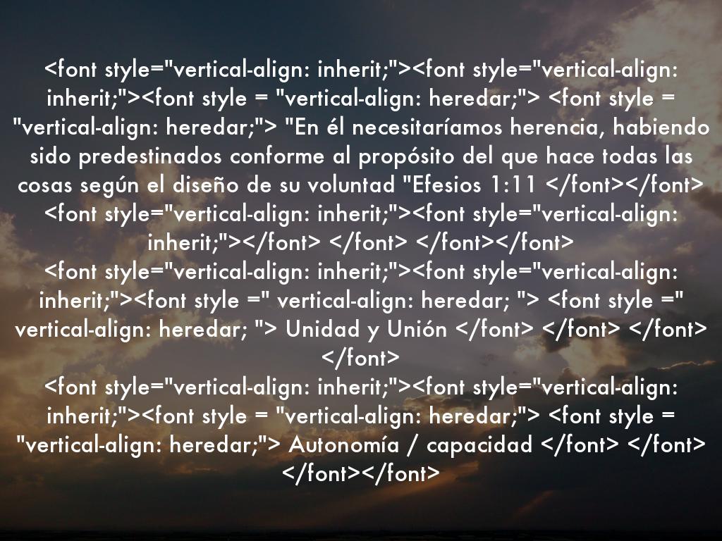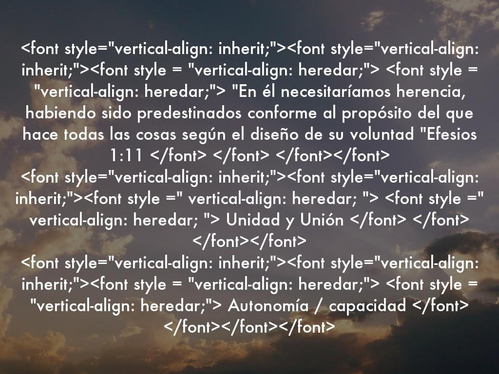 "En él necesitaríamos herencia, habiendo sido predestinados conforme al propósito del que hace todas las cosas según el diseño de su voluntad "Efesios 1:11 Unidad y Unión Autonomía / capacidad