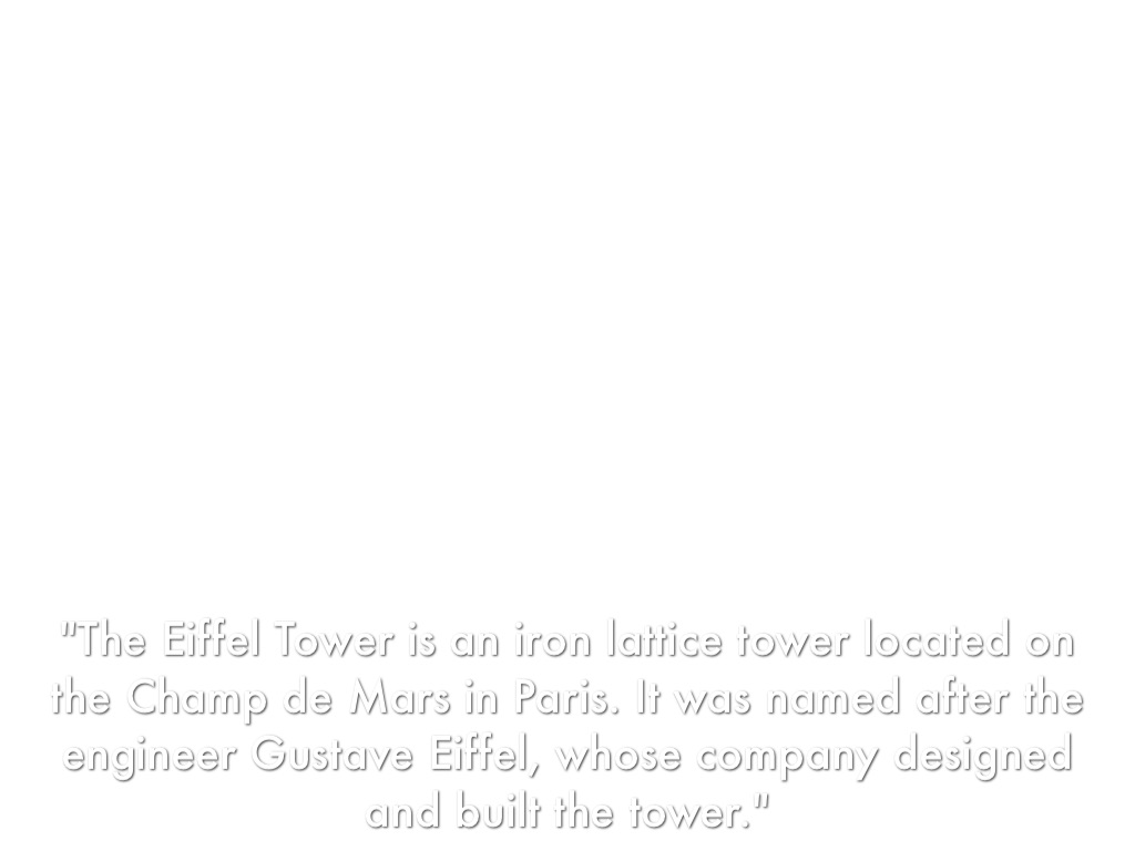 "The Eiffel Tower is an iron lattice tower located on the Champ de Mars in Paris. It was named after the engineer Gustave Eiffel, whose company designed and built the tower."