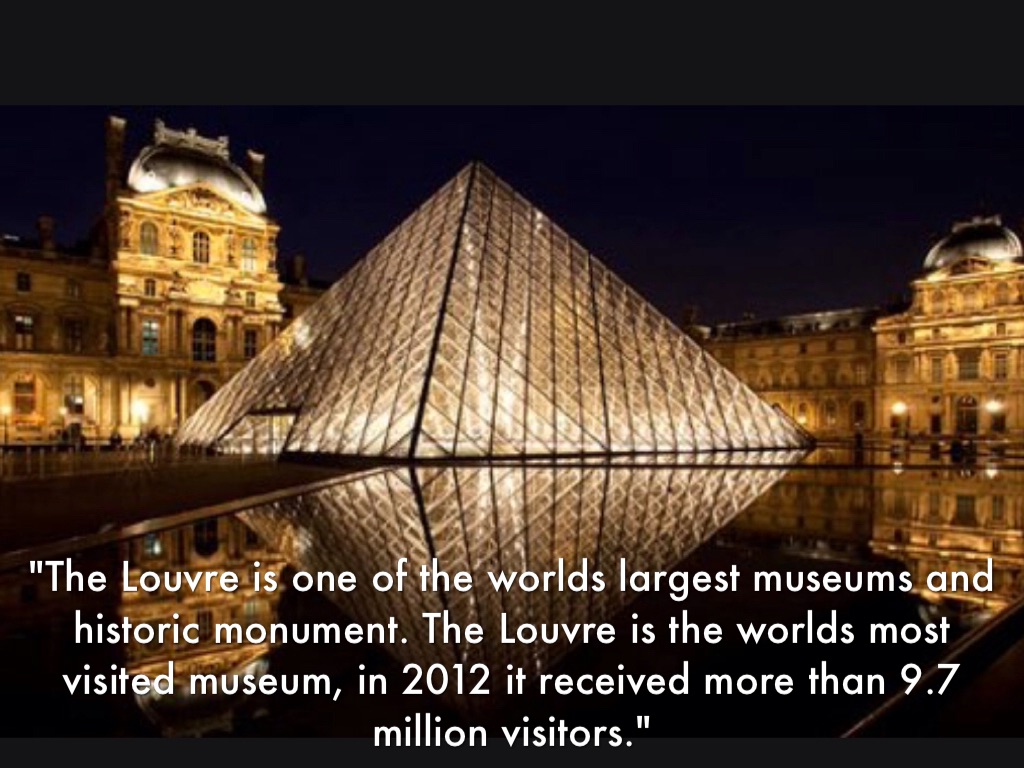 "The Louvre is one of the worlds largest museums and historic monument. The Louvre is the worlds most visited museum, in 2012 it received more than 9.7 million visitors."