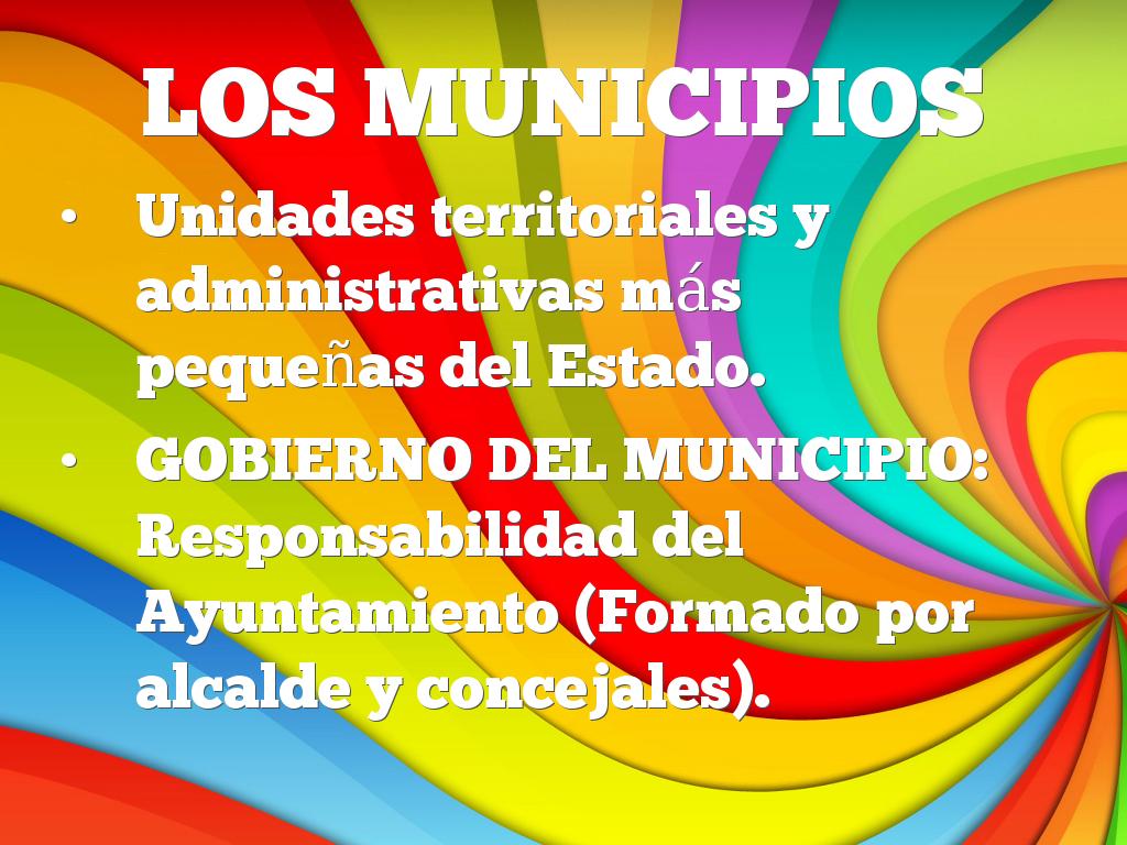 - MUNICIPIO: Unidad territorial y administrativa más pequeña del Estado.