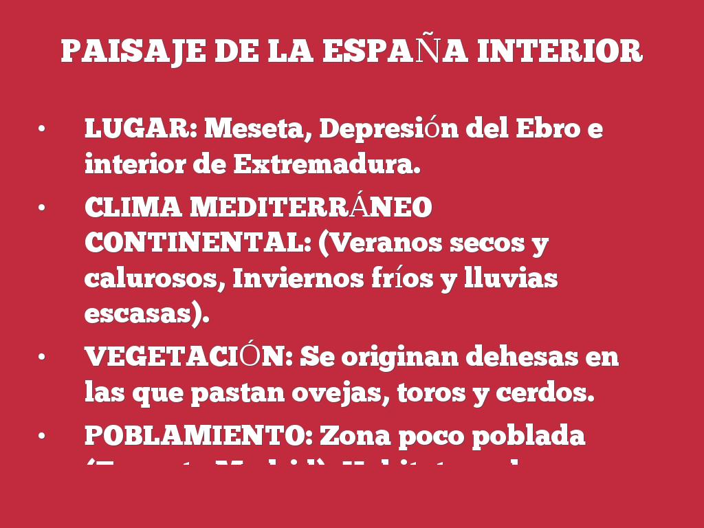 - LUGAR: Meseta, Depresión del Ebro e interior de Extremadura.