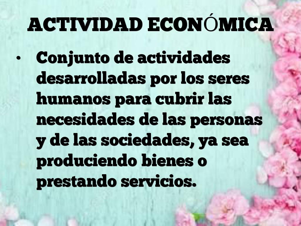 - Conjunto de actividades desarrolladas por los seres humanos para cubrir las necesidades de las personas y de las sociedades, ya sea produciendo bienes o prestando servicios.