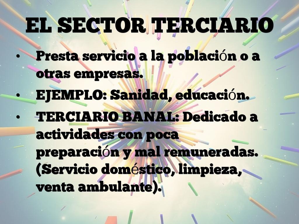 - TERCIARIO BANAL: Dedicado a actividades con poca preparación y mal remuneradas. (Servicio doméstico, limpieza, venta ambulante).