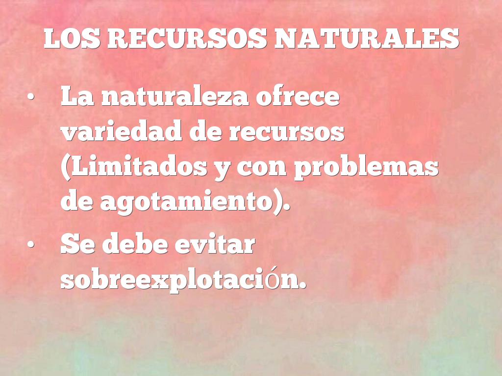 - La naturaleza ofrece variedad de recursos (Limitados y con problemas de agotamiento).