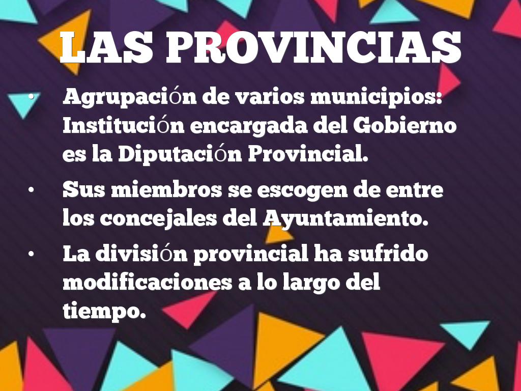 - PROVINCIA: Unidad administrativa constituida por la agrupación de varios municipios.