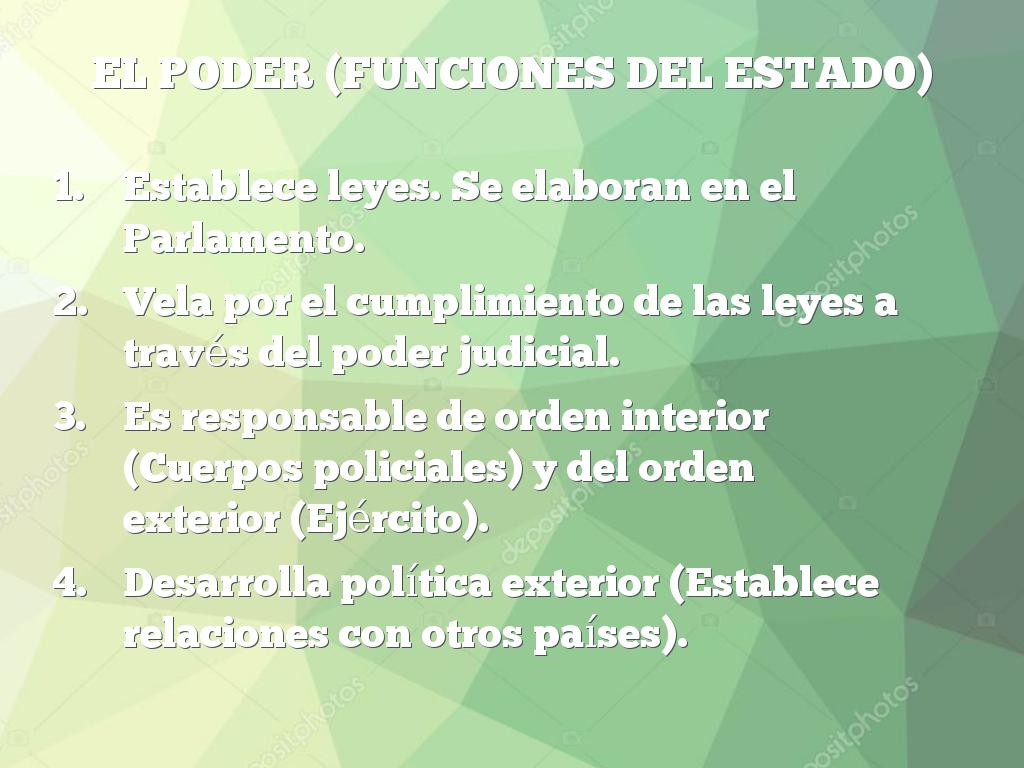 - PARLAMENTO: Elabora y vota leyes. Función legislativa.