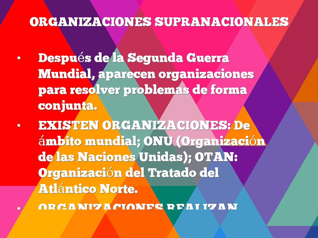 - Después de la Segunda Guerra Mundial, aparecen organizaciones para resolver problemas de forma conjunta.