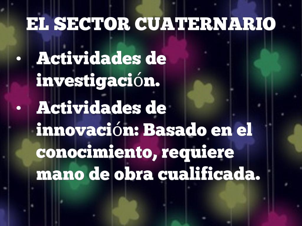 - SECTOR CUATERNARIO: Se incluyen las actividades de investigación e innovación.