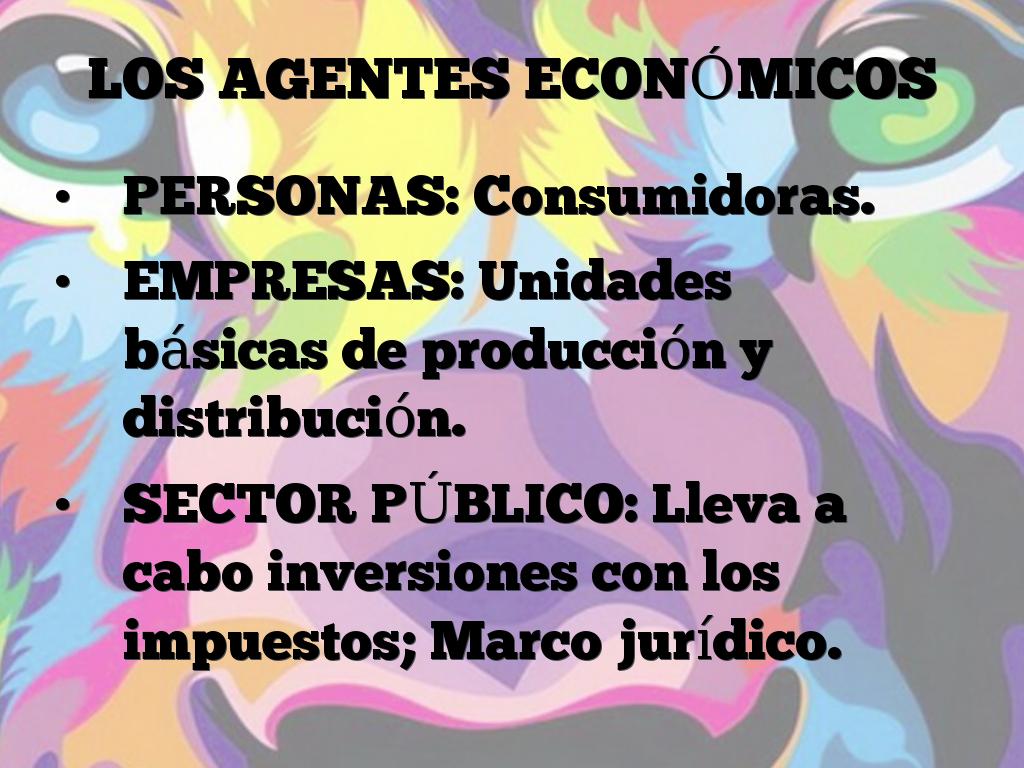 - AGENTES ECONÓMICOS: Producen, intercambian y consumen los diversos bienes y servicios.