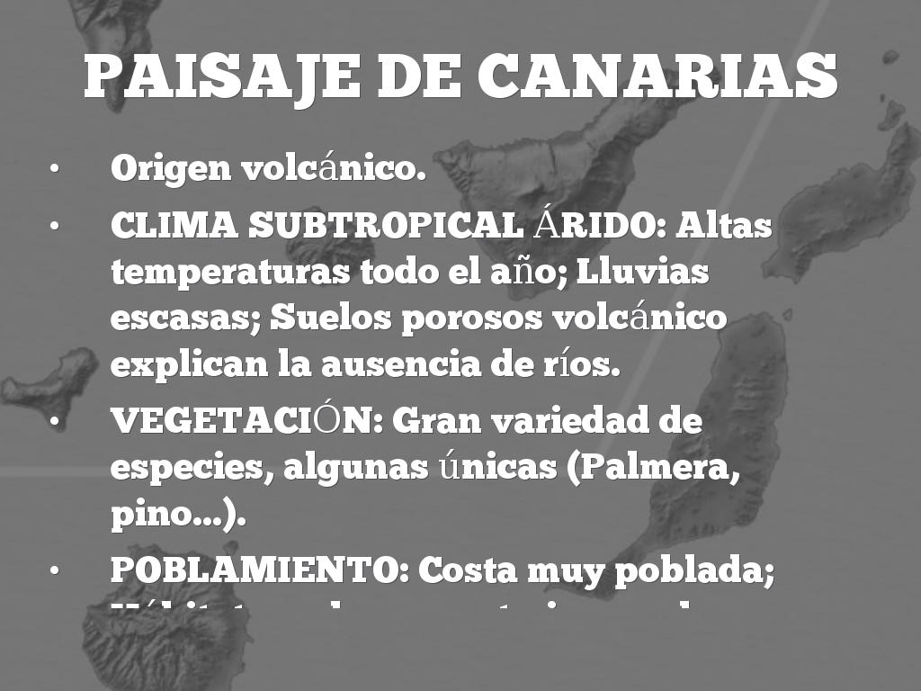 - CLIMA SUBTROPICAL ÁRIDO: Altas temperaturas todo el año; Lluvias escasas; Suelos porosos volcánico explican la ausencia de ríos.