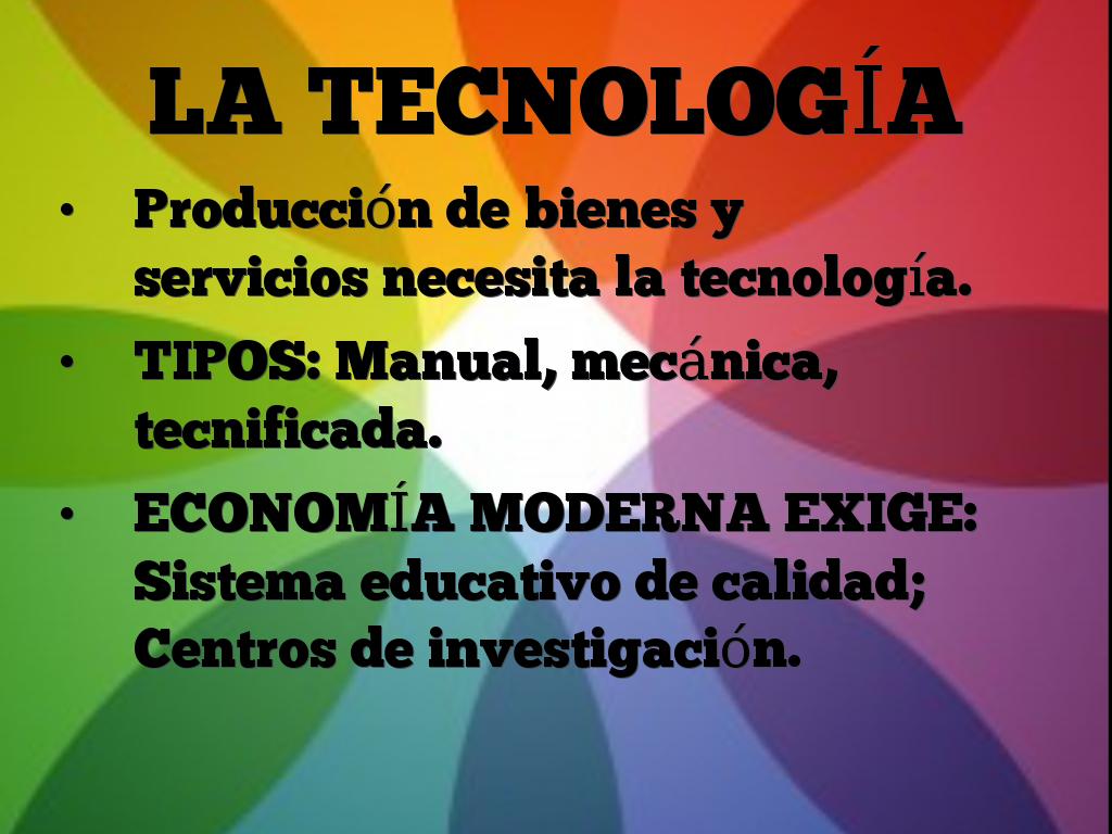 - ECONOMÍA MODERNA EXIGE: Sistema educativo de calidad; Centros de investigación.
