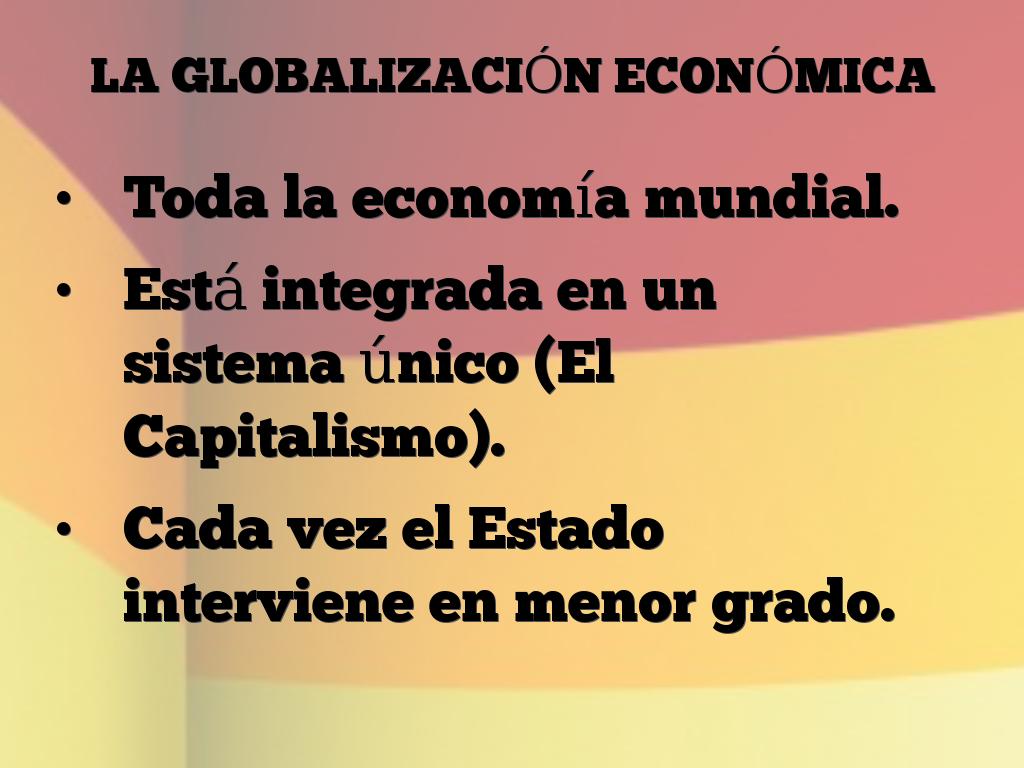 - ESTADO: Controla aspectos de la economía; Propietario de las empresas.