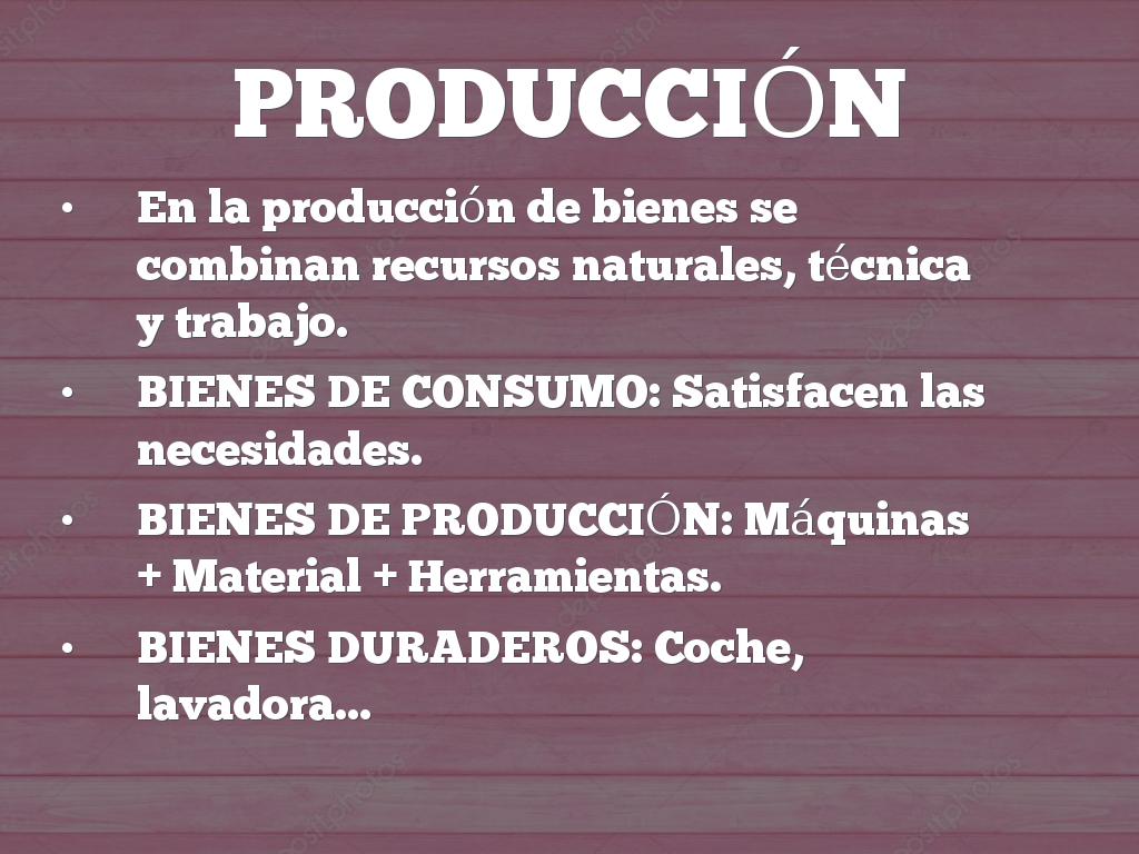 - BIENES DE PRODUCCIÓN: Máquinas + Material + Herramientas.