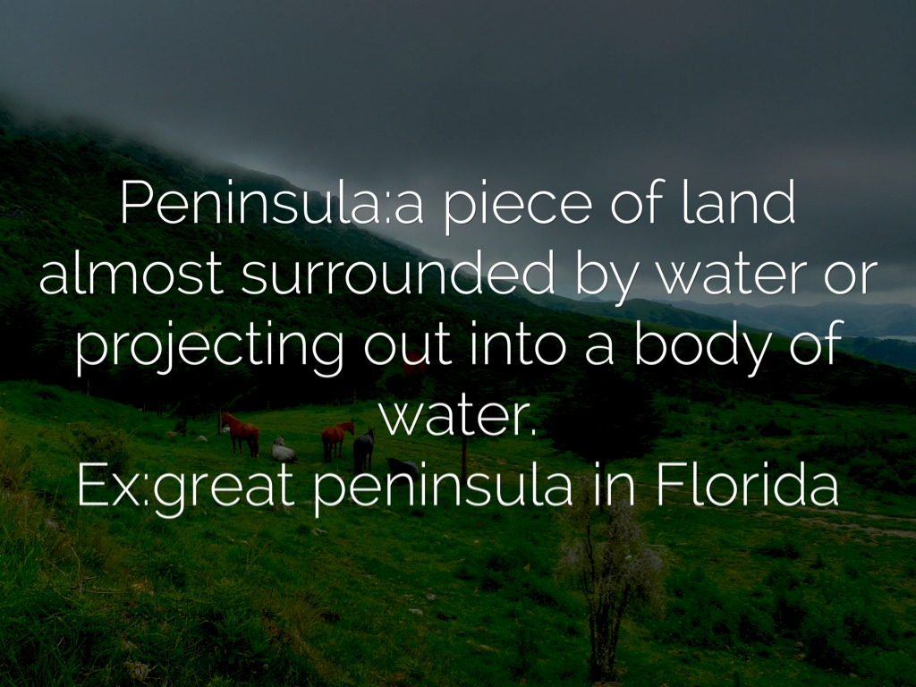 Peninsula:a piece of land almost surrounded by water or projecting out into a body of water.