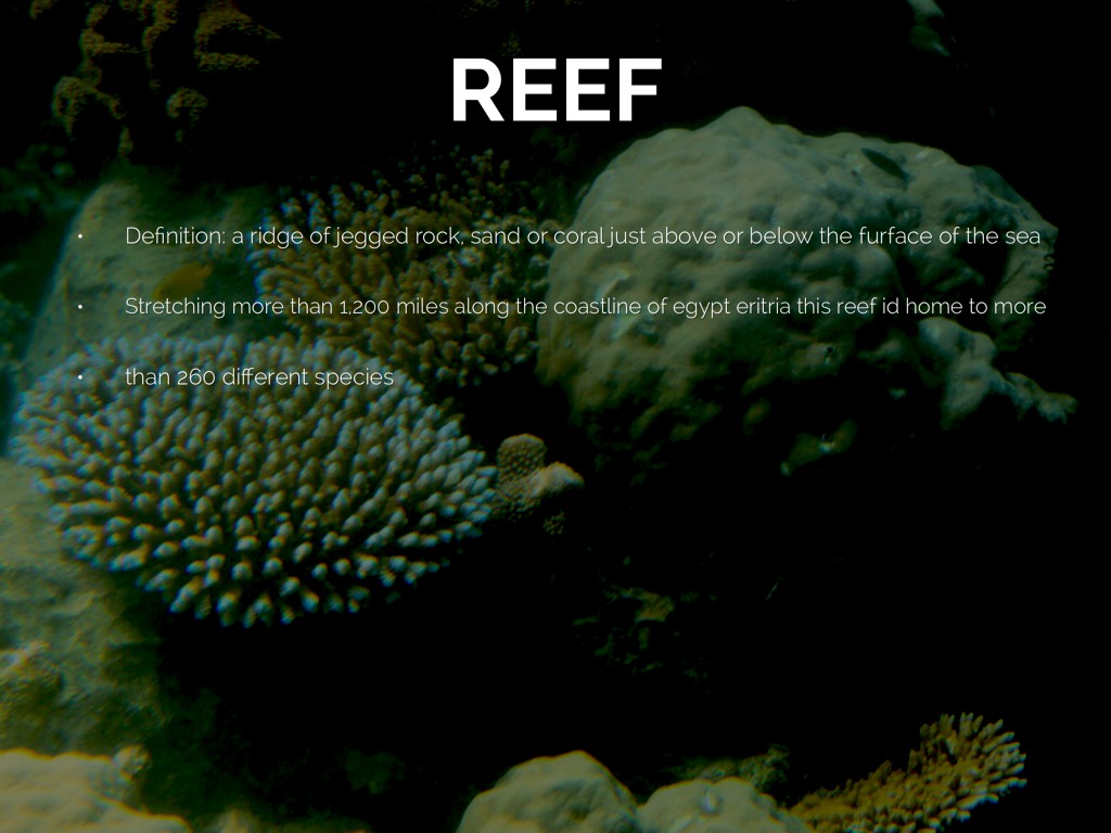 • Definition: a ridge of jegged rock, sand or coral just above or below the furface of the sea