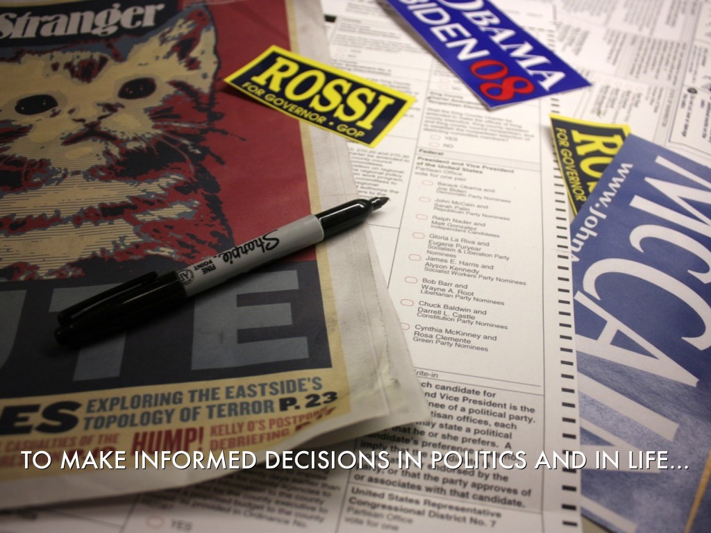 To make informed decisions in politics and in life...