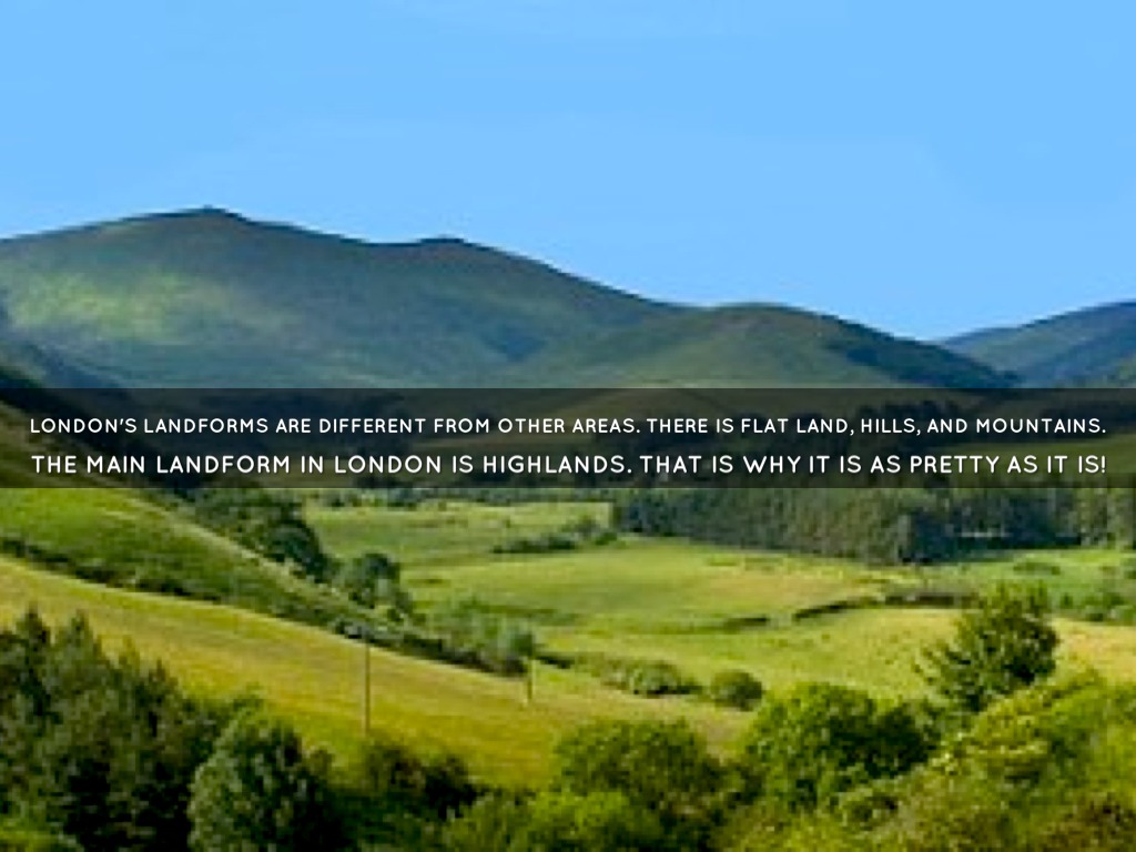 THE MAIN LANDFORM IN LONDON IS HIGHLANDS. THAT IS WHY IT IS AS PRETTY AS IT IS!