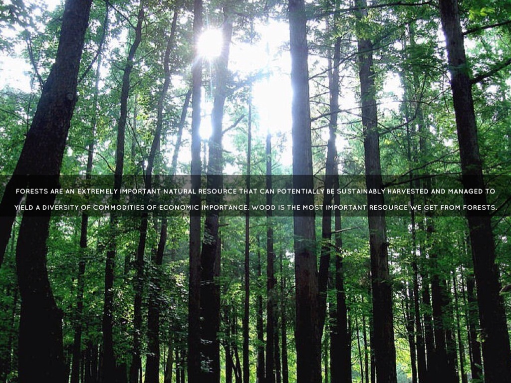 FORESTS ARE AN EXTREMELY IMPORTANT NATURAL RESOURCE THAT CAN POTENTIALLY BE SUSTAINABLY HARVESTED AND MANAGED TO