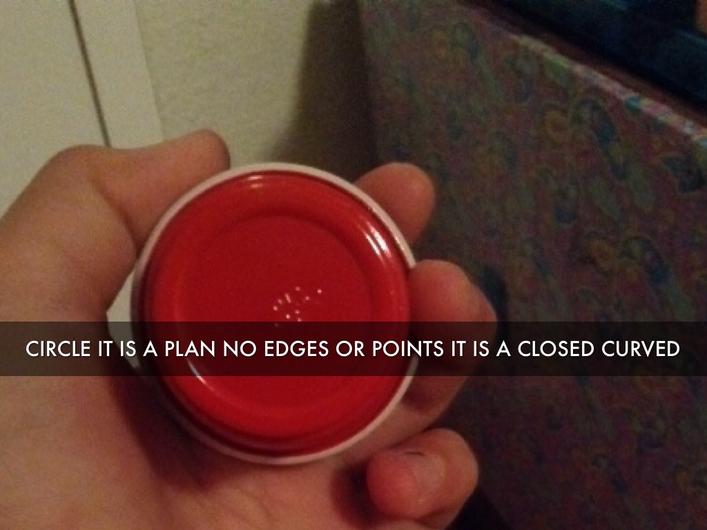 CIRCLE IT IS A PLAN NO EDGES OR POINTS IT IS A CLOSED CURVED