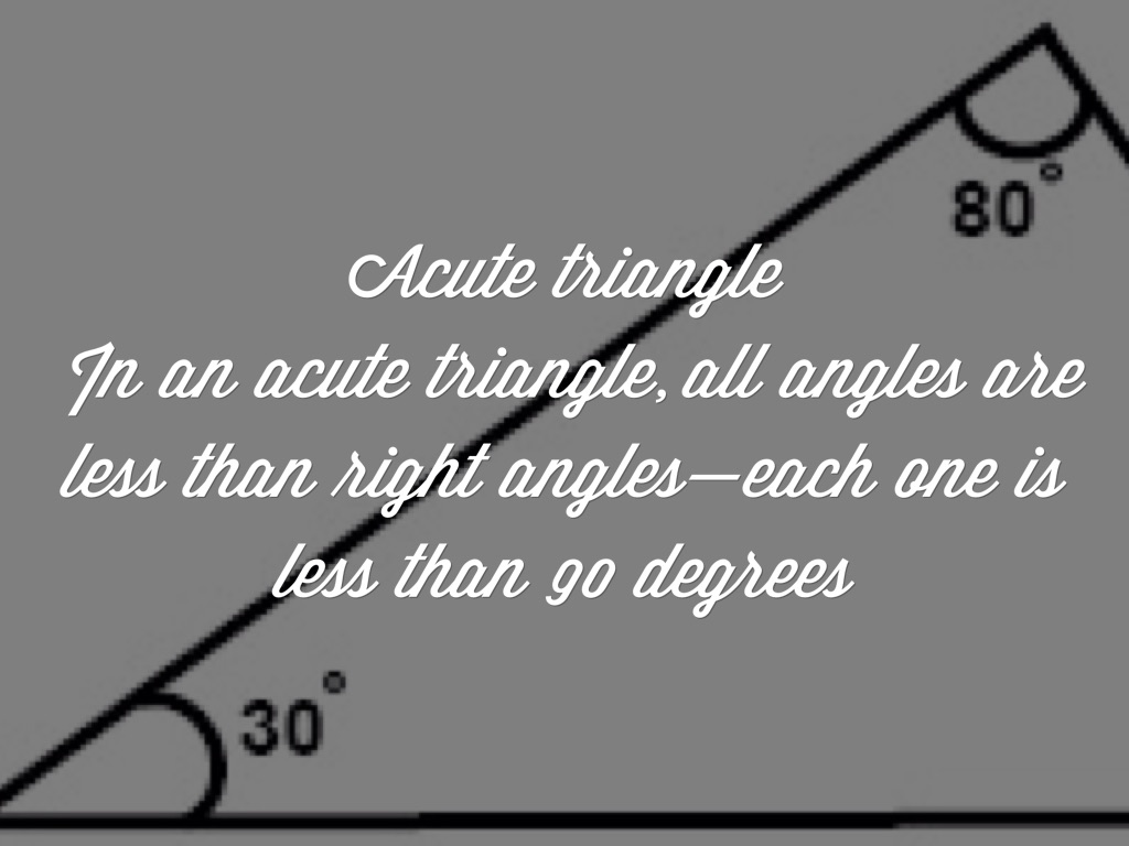 In an acute triangle, all angles are less than right angles—each one is less than 90 degrees