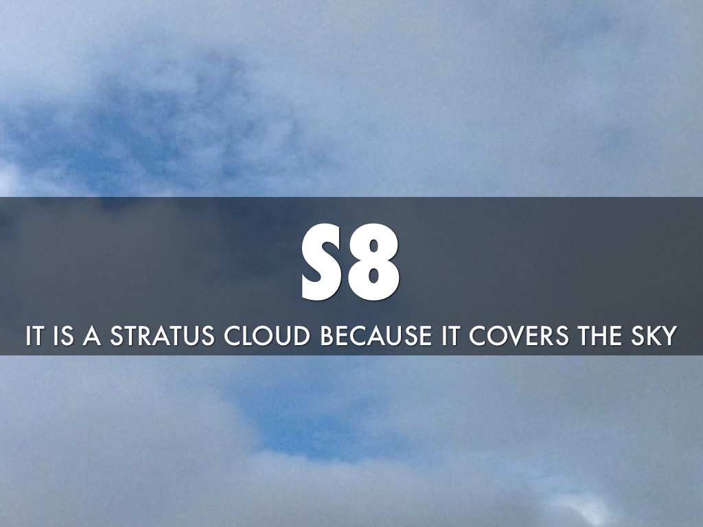 IT IS A STRATUS CLOUD BECAUSE IT COVERS THE SKY