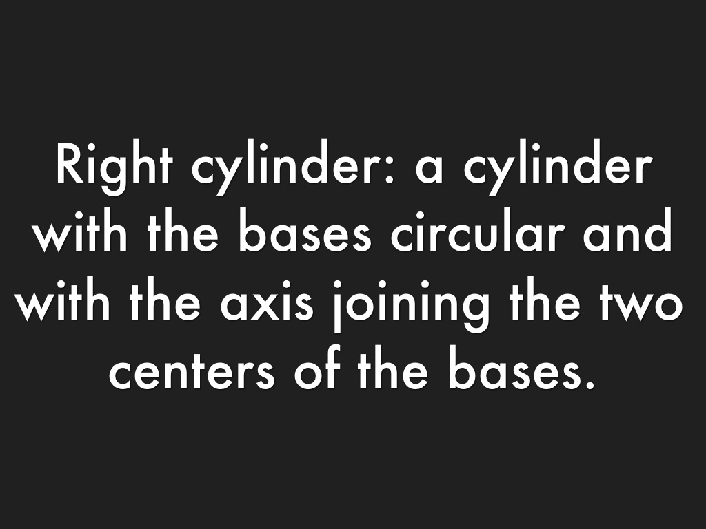 Right cylinder: a cylinder with the bases circular and with the axis joining the two centers of the bases.