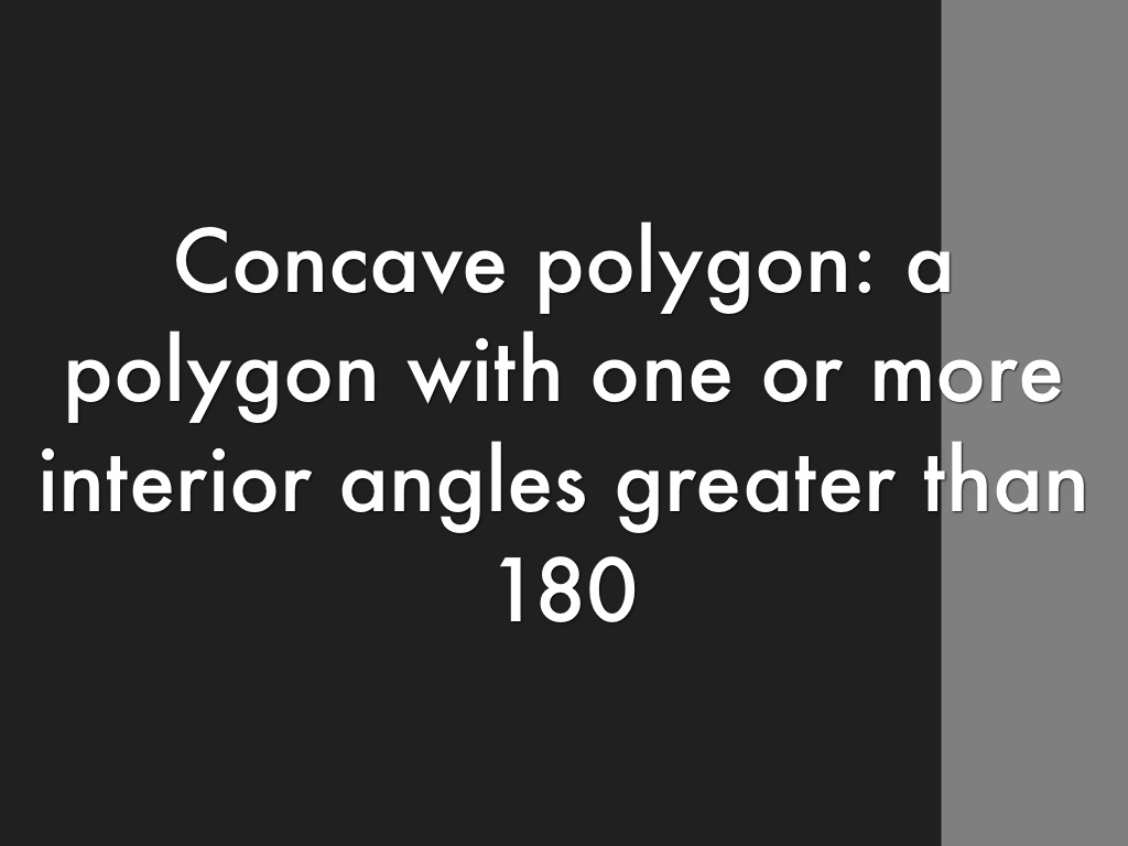Concave polygon: a polygon with one or more interior angles greater than 180