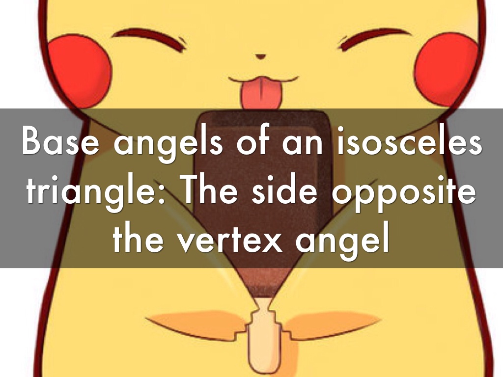 Base angels of an isosceles triangle: The side opposite the vertex angel