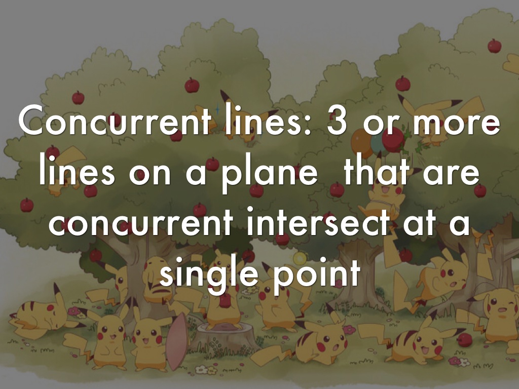 Concurrent lines: 3 or more lines on a plane that are concurrent intersect at a single point