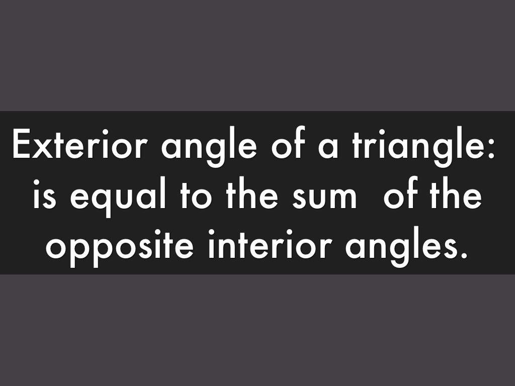 Exterior angle of a triangle: is equal to the sum of the opposite interior angles.