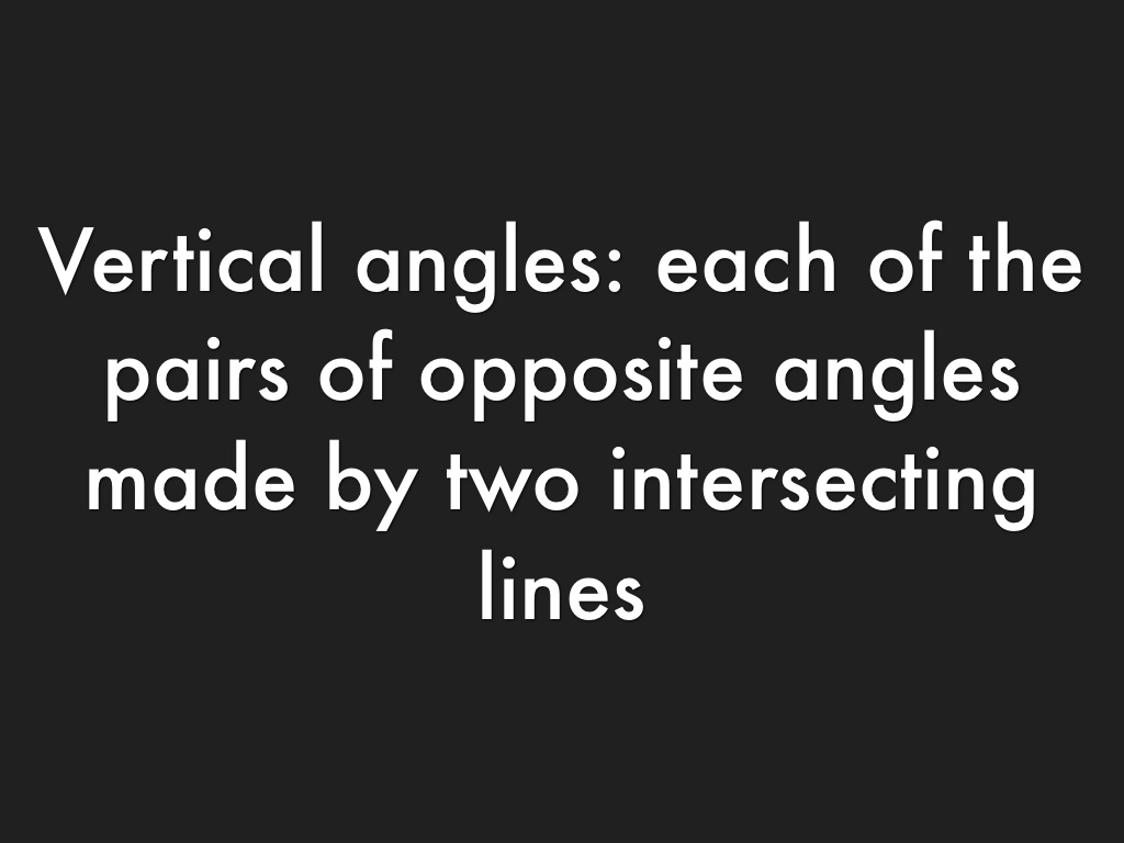 Vertical angles: each of the pairs of opposite angles made by two intersecting lines