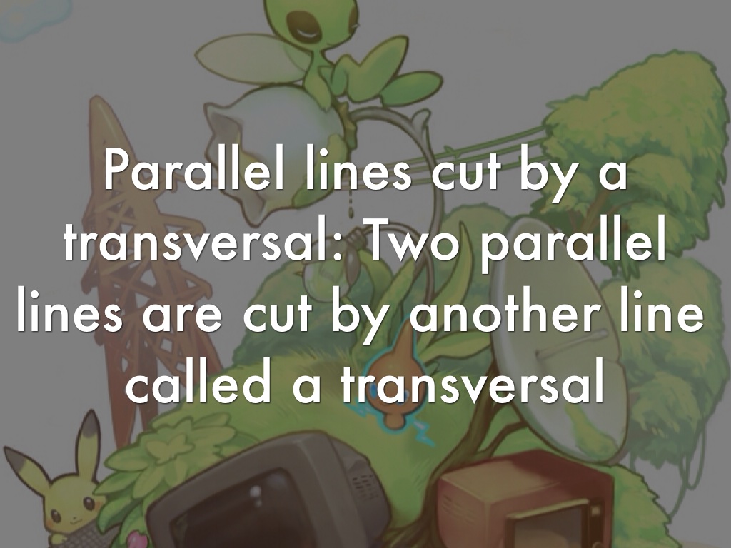 Parallel lines cut by a transversal: Two parallel lines are cut by another line called a transversal