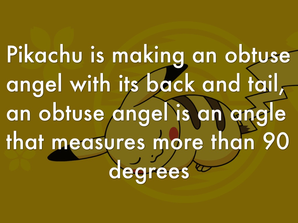 Pikachu is making an obtuse angel with its back and tail, an obtuse angel is an angle that measures more than 90 degrees