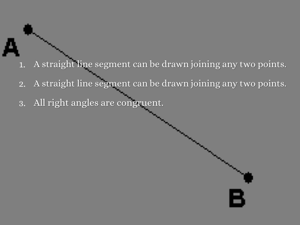 The next great advancement in geometry came from Euclid in 300 BC when he wrote a text titled 'Elements.' In this text, Euclid presented an ideal axiomatic form (now known as Euclidean geometry) in which propositions could be proven through a small set of statements that are accepted as true. In fact, Euclid was able to derive a great portion of planar geometry from just the first five postulates in 'Elements.' These postulates are listed below: